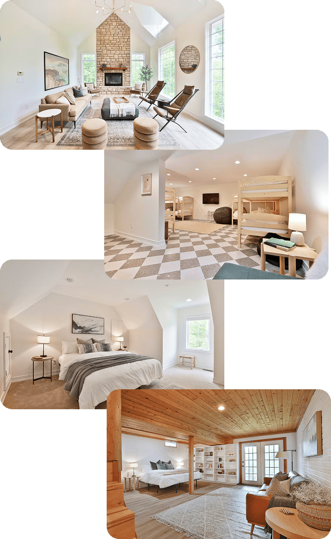 Our retreat will be held at Loch Llyn Villa, an 11,000-square-foot luxury home and cabin tucked beside the serene shores of Rose Lake (also known as Fisherman’s Lake) in the Hocking Hills region of Logan, Ohio. Nestled just beyond the iconic Old Man’s Cave in Hocking Hills State Park, this stunning property offers a peaceful, nature-immersed setting that invites deep rest, connection, and restoration.